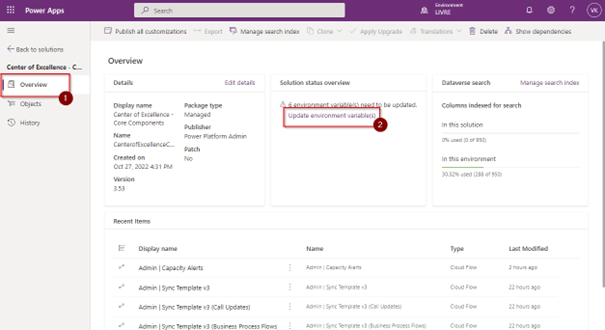The import will take several minutes, once it is completed, open the newly created solution: Center of Excellence – Core Components.