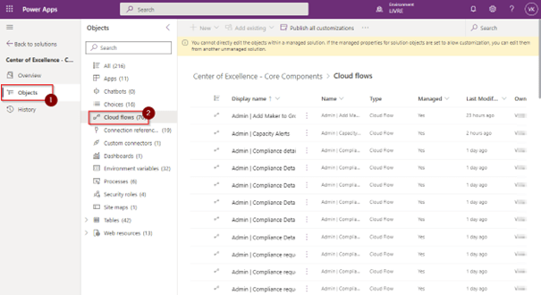 Afterwards, head over to the Objects tab and select the Cloud Flows: