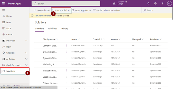 When the instance is available, head to make.powerapps.com into the appropriate instance and navigate to the Solutions zone. Here, you’ll be able to import the solution from the folder you unzipped earlier.